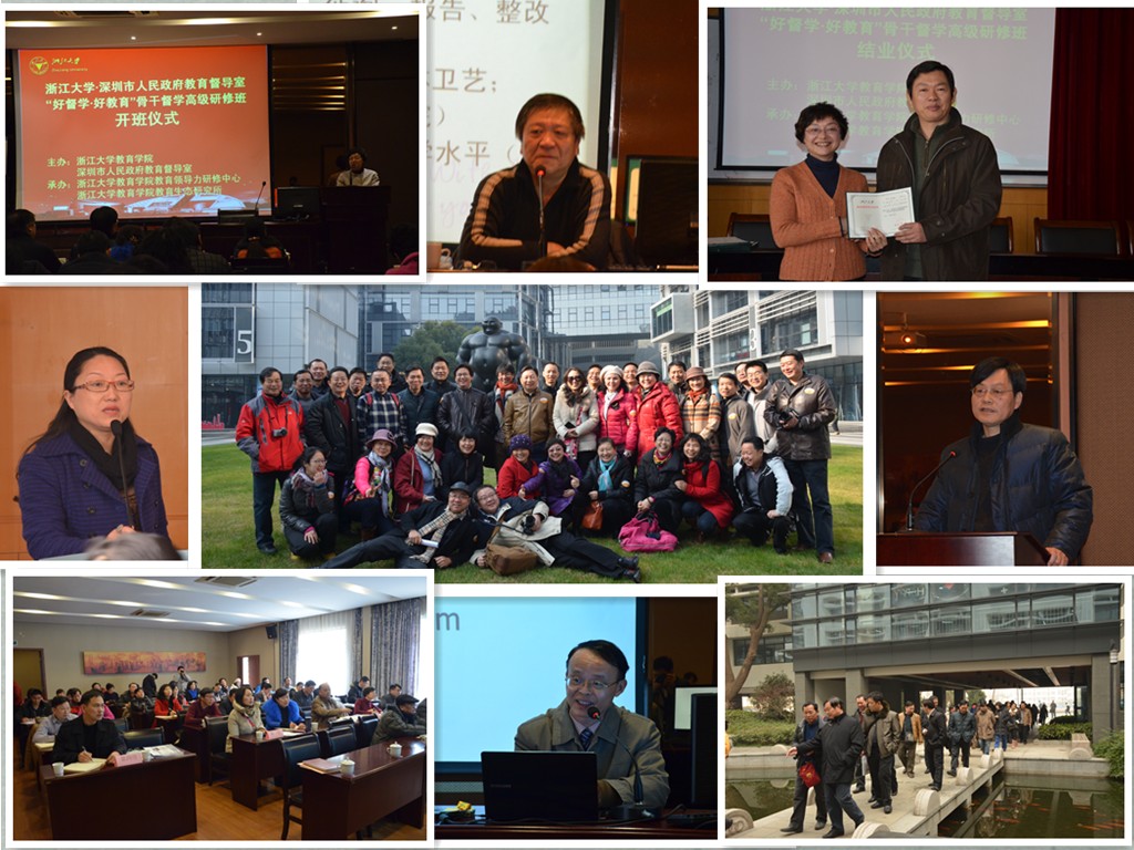 此次研修班以“争做好督学,践行好教育”为导向,以“理论引领、实践生成、砥砺思想、分享智慧”为特色,以促进督学教育理念、专业知识、专业能力、专业情感的有效发展,致力于实现改变心态、出彩人生的研修目标。研修注重课题式研训,生态化成长,突显多样、自主、协同的设计理论。课程形式多样,专家组成多样,研修内容丰富。培训期间开设了教育博士主干课程、管理实践智慧课程、实地文化寻访课程、智慧论坛互动等课程,邀请专家学者、管理名家、行政领导、特级校长等,与学员分享和探讨了国外教育督导的发展与启示、教育督导与基础教育质量监测、创新人才培养与创新教育、浙江省教育督导框架建设、中小学校长领导力、学校督导、学校管理等前沿的教育理念和实践,实地考察了浙派名校、胡雪岩故居、阿里巴巴公司等优秀文化场所,让学员在文化浸润中拓展视野,丰厚人生涵养。