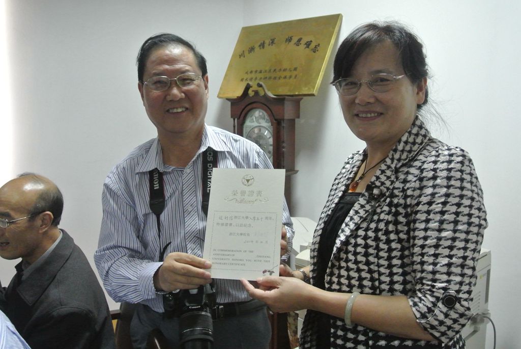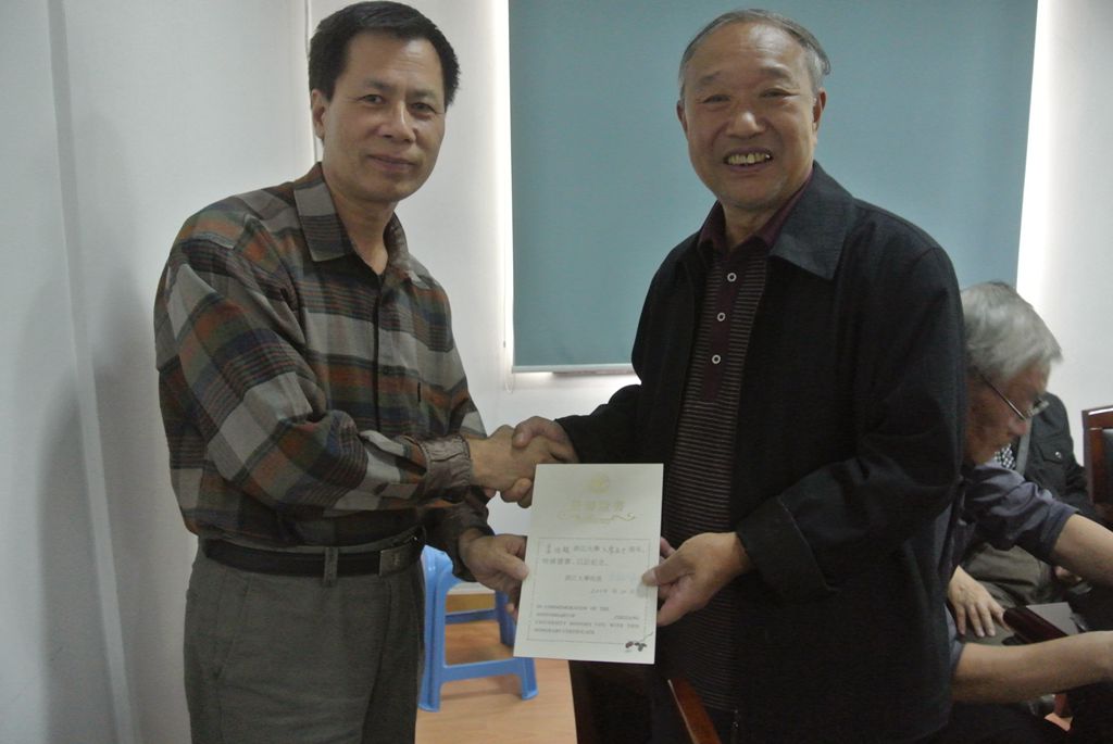 领导向校友们颁发了特别制作的“入学50周年荣誉证书”以及校友徽章。校友们惊喜的表示,这是此行收到的最有价值的礼物。曾任浙江省长兴县教育科学研究所所长的胡根辉校友谈到,50年前自己入学时,教育学系一届仅有3个班60余名同学,如今母校的跨越式发展让大家感到由衷的自豪与骄傲。他衷心感谢母校在求学时以及毕业后对同学们的帮助与支持,希望母校和母系越办越好。在热切而喜悦的交谈中,校友们深情回忆起当年求学时的经历,重温昔日老师的谆谆教诲以及同窗间的深情厚谊,并交流彼此毕业后的工作生活情况,座谈会在大家的欢声笑语与依依不舍中圆满结束。
