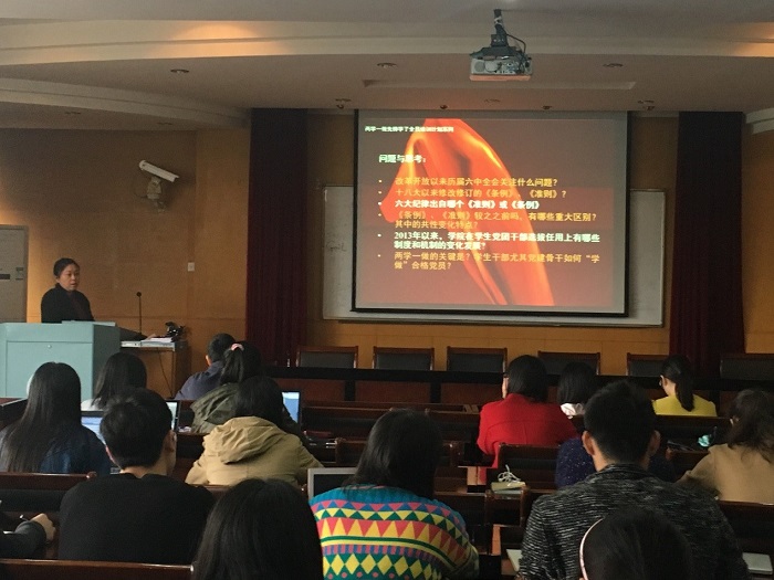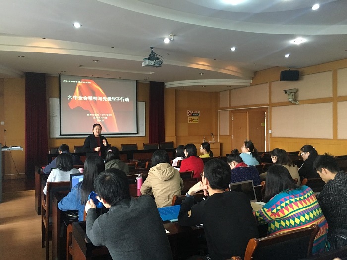 为了认真学习领会、深入贯彻落实党的十八届六中全会精神,11月14日下午教育分党校组织先锋学子全员培训计划第六次集中学习暨六中全会专题,学习《准则》、《条例》,探讨如何联系学科专业实际、学习发展实践,更好落实坚定理想信念这一首要任务,共同推进全面从严治党向高校延伸。第六次学习扩大到新上任的党小组、党章学习小组组长一级。巴卡漫画 党委副书记、学生党总支书记王珏老师为全体学生党员骨干进行了专题培训。