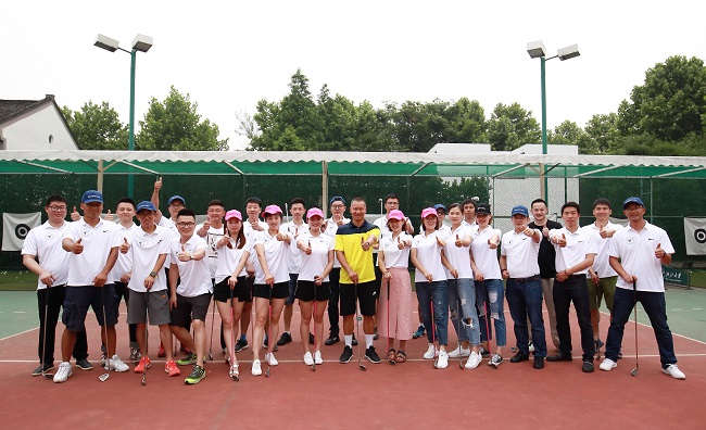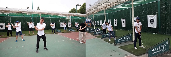 午后,校友们结伴前往浙大紫金港校区,见到了学生时代喜爱的楼恒阳老师。楼老师带领校友们再次体验感受学生时代的课堂,为大家上了一堂丰富多彩、趣味十足的高尔夫教学课。大家仿佛又回到了十年前的课堂,又回到了学生时代,那些嬉戏打闹的日子,那些一起学习的日子,那些一起哭一起笑的日子,岁月并没有在大家的心里和脸上留下太多的痕迹,更没有冲淡大家的感情。