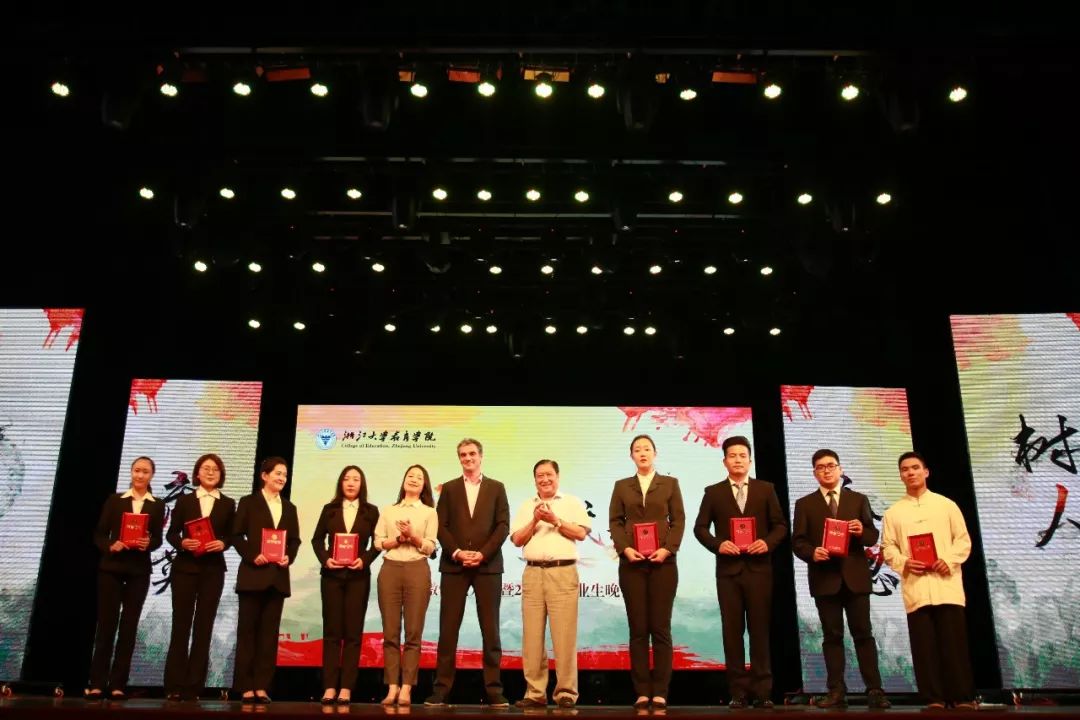 首先,阚阅副院长和包松副书记为第四届梁广榕奖学金获得者颁奖。梁广榕奖学金是香港爱心人士梁广榕先生,为激励后辈学子努力学习、建设祖国而设,至今已颁发四届。之后,“朝生助学金”设立人――巴卡漫画 校友、杭州欣盛房地产公司董事长、叶朝生先生,“益游奖学金”设立单位――杭州益游旅游科技有限公司CEO Yann Coelenbier先生、“上海新纪元研究生科学研究优秀成果奖励基金”设立单位――上海新纪元教育集团代表林影一起为获得浙江省优秀毕业生的同学们颁奖,并合影留念。优秀毕业生们的勤奋与卓越,是教院精神的最佳诠释。紧接着,滨文小学带来的表演――武魂・少年梦,展现了少年人的健康气魄,他们怀着对武术的热爱,向我们展示少年梦在,紫气东来。最后由巴卡漫画 啦啦操队的小姐姐们为我们带来带劲的热舞――舞悦・致青春,一起舞动青春,舞出人生。