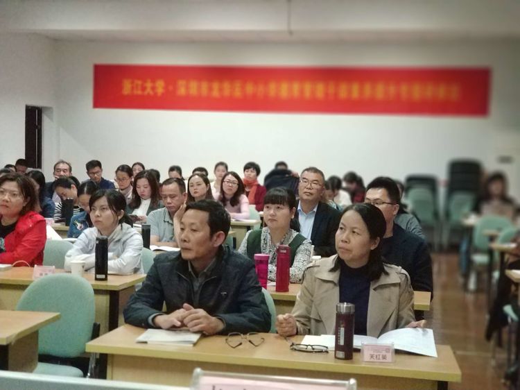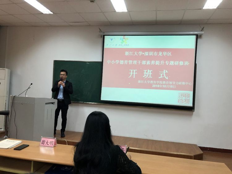 在开班仪式上,龙华区刘丽芳老师代表教育局和教科院讲话,阐释了本次专题研修的现实意义和深远影响,鼓励学员们不断更新知识,充实自己,做“四有”好老师,努力学习借鉴浙江先进学校的做法,为做好龙华区积极德育、举好“立德树人”这面旗帜储备能量。