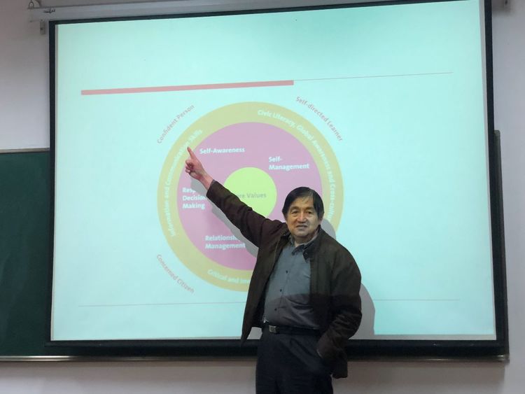 刘力教授先提出了两个关键词:“成长性思维”“道德敏感性”供学员思考。接着围绕“指向核心价值观”从三个方面阐述了如何在深化改革中探索立德树人新模式。