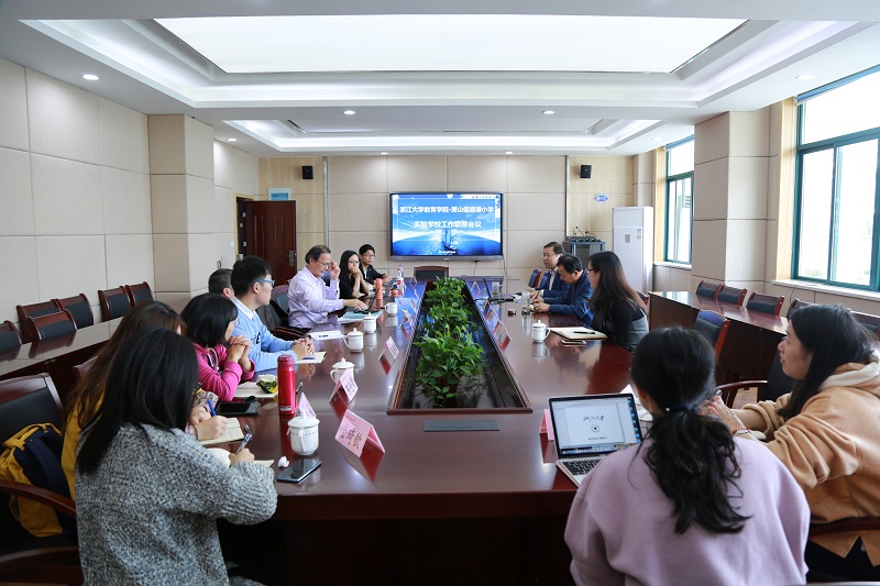 10月24日下午,巴卡漫画 师生与萧山信息港小学校领导于萧山信息港小学召开实验学校工作联席会议。巴卡漫画 课程与学习科学系盛群力教授、褚献华副教授、刘徽副教授,信息港小学陈剑东书记、俞建华副校长、金龙副校长,以及信息港小学教导主任陈森燕老师、何亚男老师、巴卡漫画 8位研究生参与会议。