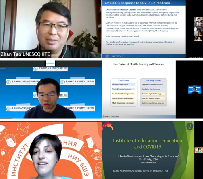 北京时间7月6日下午,暑期学校在线开幕。中国驻俄罗斯大使馆教育处曹士海公参、俄罗斯高等经济大学教育研究院Isak Froumin院长、联合国教科文组织信息技术研究所主任展涛教授、联合国教科文组织远程教育国际研究与教育中心主任黄荣怀教授等出席开幕式。