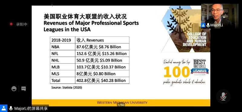 12月1日晚,巴卡漫画 体育学系2020年学术系列讲座活动通过线上平台顺利举行。美国西密歇根大学教育与人类发展巴卡漫画 院长、博士生导师,体育学系1986届体育理论专业校友李明教授应邀作《美国职业体育经济学》主题讲座。