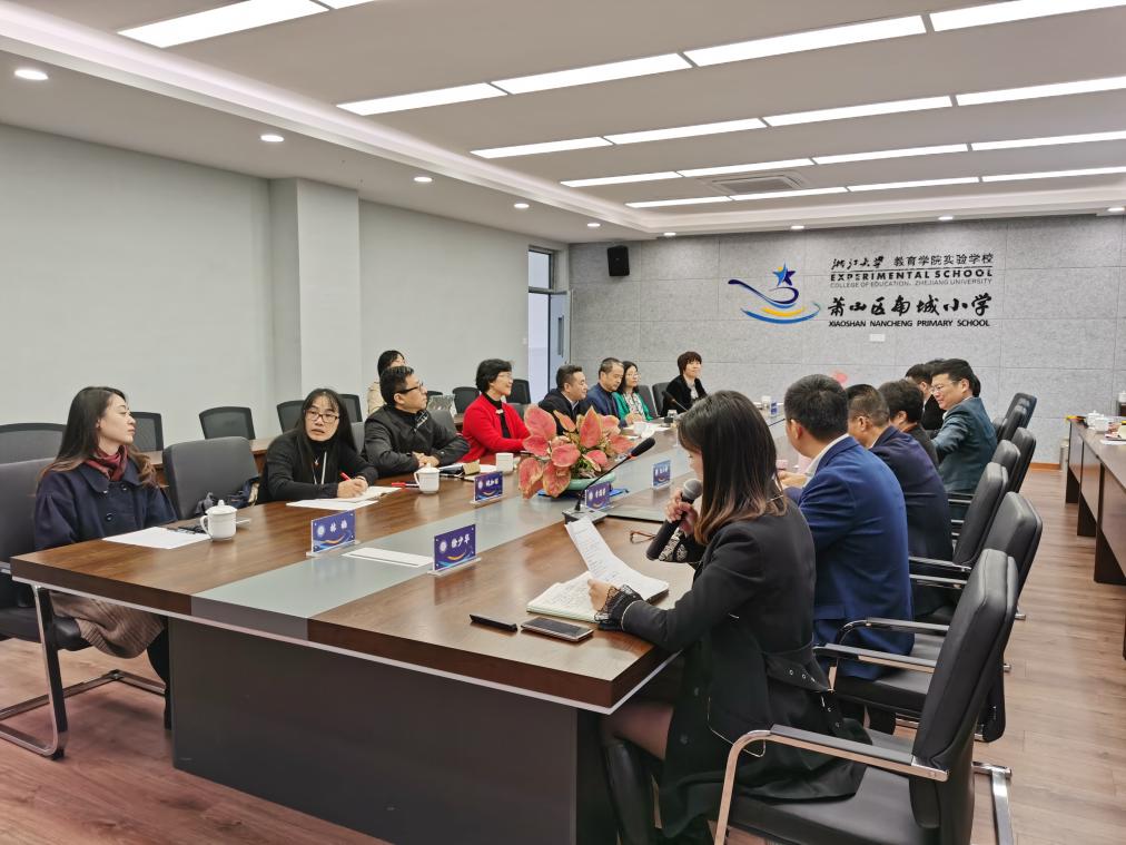 专家团队赴萧山南城小学召开年度汇报会,围绕“高位引领 接地生长 逐梦同行”主题,汇报和总结现阶段项目进展情况,并就下一阶段项目的开展与推进进行探讨和展望,会议由萧山南城小学副校长徐少华主持。