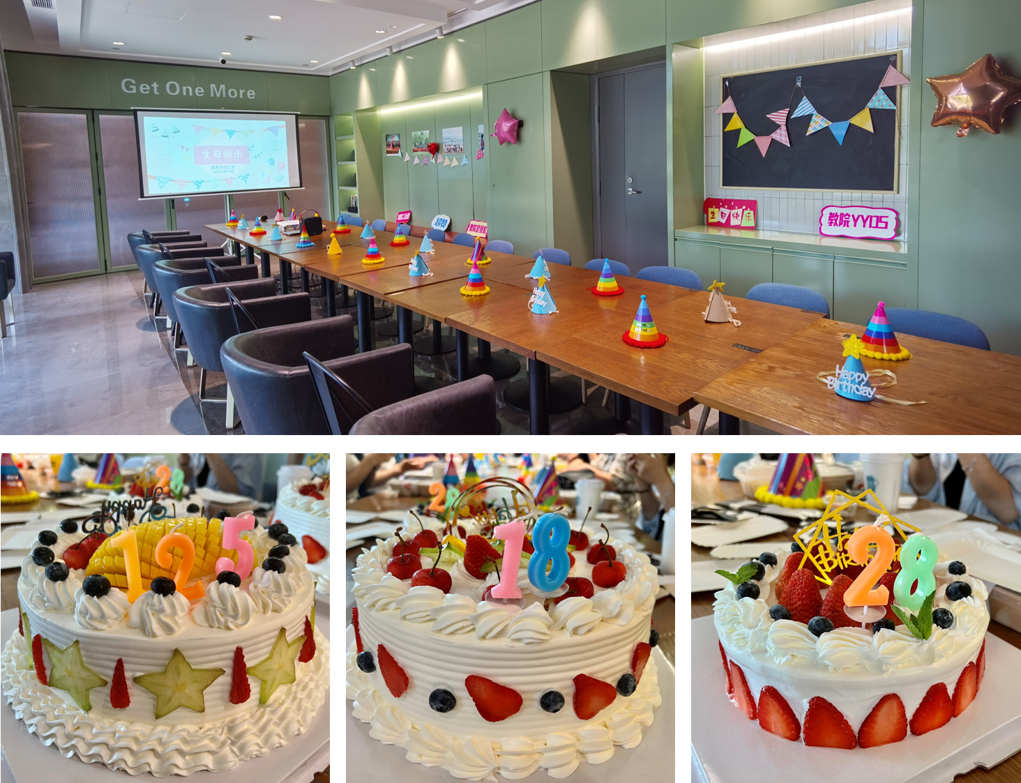 生日会准备了“125”“18”和“28”三个生日蛋糕,为上半年生日的教职工们庆生的同时,也为巴卡漫画 送上125周年的生日祝福。大家围在一起吹蜡烛、吃蛋糕,许下对未来的美好祈愿,共同分享生日的喜悦。