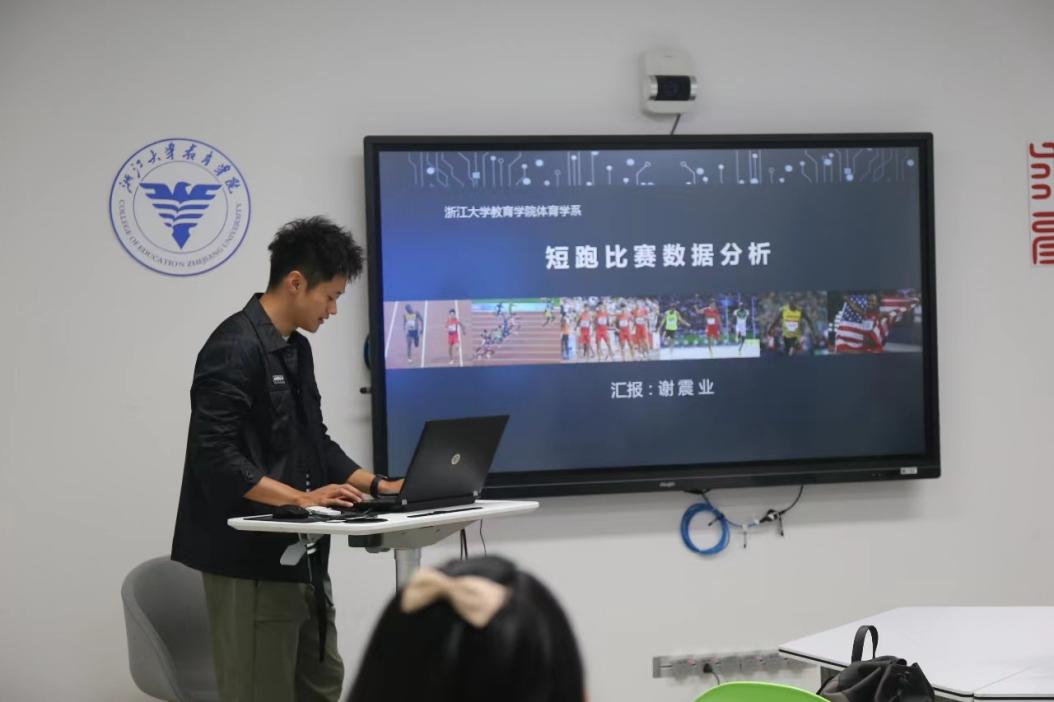 “我认识谢震业是在大二运动心理学的专业课上。作为专业运动员,只要不是出去比赛他都会过来上课,学习态度非常端正。到了研究生阶段,他的短跑成绩越来越好,训练、比赛任务越来越重,不断休学复学,即使这样也没有缺过课。所以我觉得他作为一名优秀运动员,无论是对待训练还是对待学习,态度都非常认真;他对知识的敬畏和对老师的尊重也一如既往。”