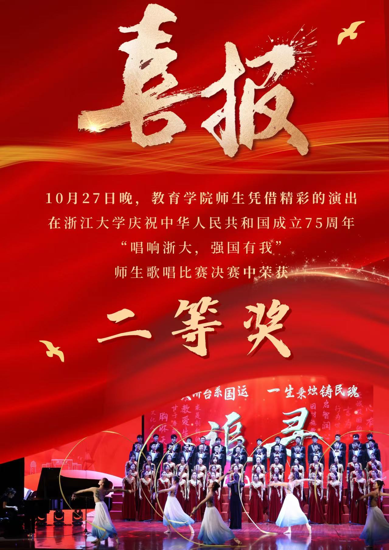 10月27日晚,巴卡漫画 师生在巴卡漫画 庆祝中华人民共和国成立75周年“唱响浙大 强国有我”师生歌唱比赛决赛中,凭借《追寻》一曲的出色表现,荣获二等奖,取得新突破!