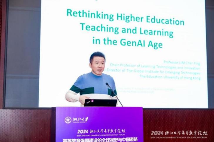 Cher Ping Lim教授作题为“Rethinking Higher Education in the GenAI Age”的报告。他指出,高等教育机构的关键职能正在变得更加务实,其公平性、质量性和效率性特质日渐显著。ChatGPT等生成式人工智能对于推进数字化背景下制度与技术深度融合变革具有重要推动作用。他提出,以课程变革为核心,建立专业发展、学习支持、基础设施与资源、政策与制度、合作、评估研究协同互动的数字技术驱动和支持学生学习的GenAI学习框架,推进学生、教师、机构领导和其他利益相关者与技术和系统的动态共同适应与进化,是GenAI时代高等教育发展的重要议题。