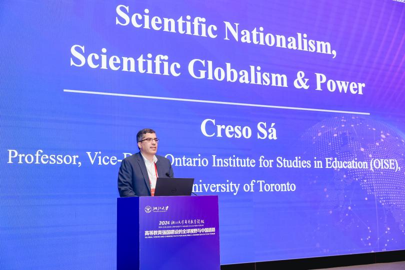 Creso Sá教授作题为“Scientific Nationalism, Scientific Globalism & Power”的报告。他剖析了高等教育中的权力问题,特别关注了科学民族主义与科学全球主义之间的差异及其对高等教育权力类型的影响。他阐释了制度逻辑或文化体系如何塑造个体、组织、团体和社会部门对世界的理解及其活动方式,并强调了认知和社会过程在行为塑造中的关键作用。在科学全球主义的逻辑中,科学研究被视为全球性的努力,超越了政治、种族和文化边界,其规范由全球科学共同体所塑造。