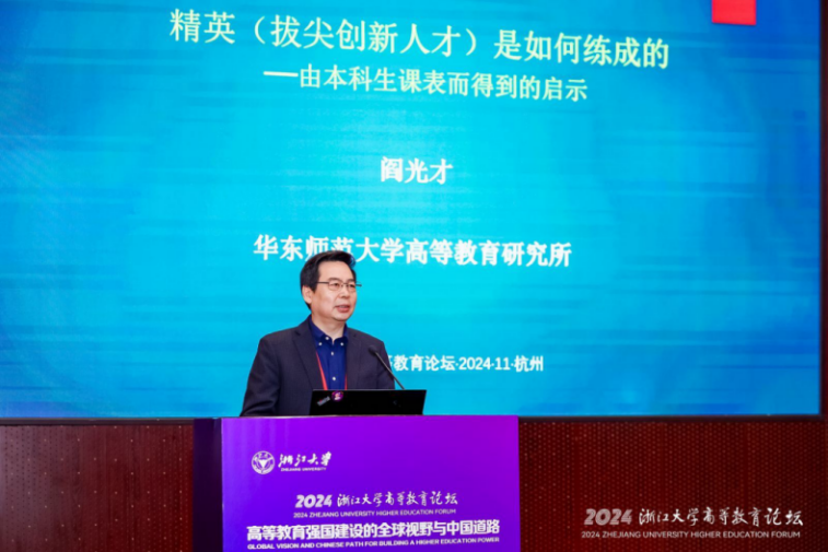 阎光才教授作题为“精英(拔尖创新人才)是如何练成的——由本科生课表而得到的启示”的报告。报告以本科生课程表为微观切口,通过详细比较中外知名大学的本科生课表,揭示课程表背后所蕴含的本科生课程负担、压力与学习效果的关系。基于课程门数与课程质量及深度的非正比关系,他以域外比较的方式讨论了大学本科课程学分、数量等计划的科学化区间。他着重阐释了以个体课程表为微观研究视角所具有的宏观研究意义,并建议调整本科生的课程安排,重视学生的学习自由,以个性化与差异性的方式优化培养理念与方式,进而提高人才培养质量与成效。