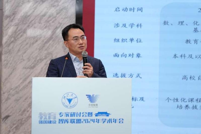 北京大学教育经济研究所副所长郭丛斌研究员以《一贯制培养拔尖创新人才助力教育强国建设》为题分享了当前拔尖创新人才培养的现状和国际经验。他表示,创新人才不仅是国家和企业在全球竞争中胜出的关键,更是推动社会进步和应对未来挑战的重要力量。报告详细阐述了拔尖创新人才“三大计划”的不同培养目标、培养阶段与培养方式,着重探究了一贯制培养拔尖创新人才的效果以及拔尖创新人才一贯制培养效果不明显的原因。结合一贯制培养拔尖创新人才的国际经验,提出了优化选拔标准和衔接机制的路径,更好地服务国家基础学科发展和战略需求。