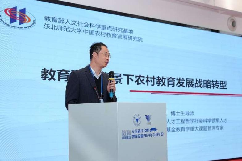 东北师范大学中国农村教育发展研究院副院长刘善槐教授以《教育强国建设背景下农村教育发展战略转型》为题,分享了当前学龄人口呈现出的一些新变动趋势,如学段上呈“排浪式”波动、聚集程度进一步提升、乡村学龄人口进一步稀疏化等。在此基础上,他描绘了农村教育发展的未来图景,并且提出农村教育发展的战略转型发展策略,即城乡关系由城乡区隔走向融合发展,资源配置由要素组合转向技术赋能,学校功能由教育功能转向综合功能,以此促进新时期农村教育的发展与转型。