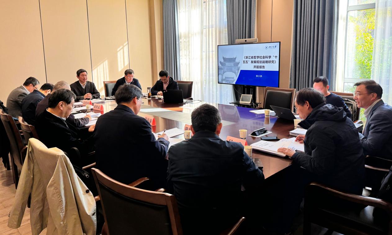 徐小洲教授从研究的战略背景、基本思路、目标愿景、主要任务、重点工程、保障措施等方面向专家组汇报了课题研究基本内容与进程安排。在认真审议课题材料、听取汇报的基础上,专家组充分肯定了《浙江省哲学社会科学“十五五”规划战略研究》重大课题对谋划浙江省哲学社会科学高质量发展道路,推动浙江省哲学社会科学奋力走在全国前列,具有重要的理论价值与实践意义。专家组认为,课题研究思路清晰、目标明确、内容合理、方法得当,一致同意开题。根据课题研究目标与任务,专家组提出了进一步完善研究方案的建设性意见建议。