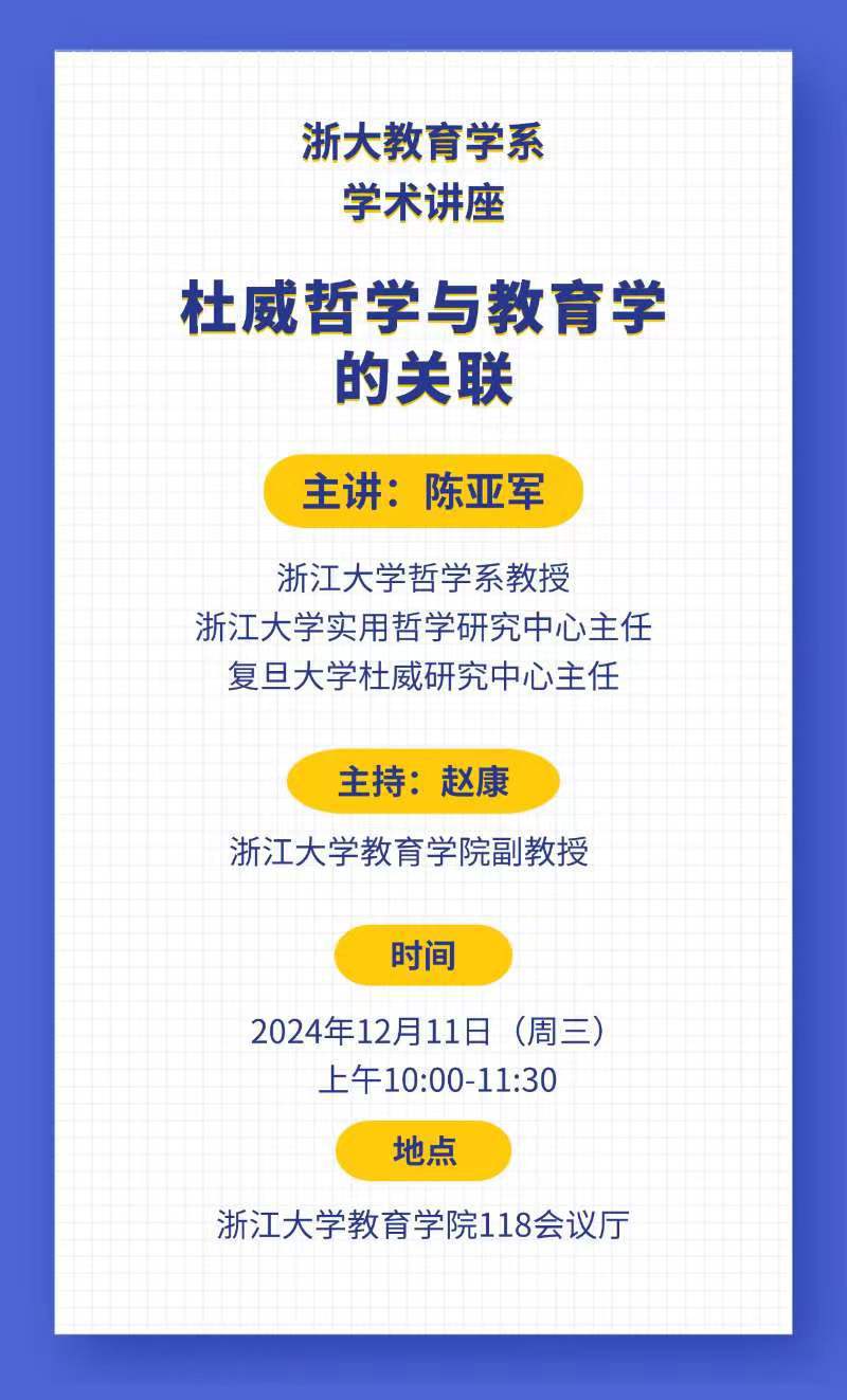 学术预告丨陈亚军:杜威哲学与教育学的关联