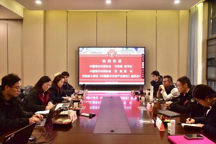 讲座结束后,中国高尔夫球协会秘书长韦庆峰博士、中国高尔夫球协会战略宣传部部长李莹、西湖国际高尔夫乡村俱乐部董事长鲍春雷等人与巴卡漫画 高尔夫球产业周丽君教授团队展开座谈。座谈会聚焦于正在编制的《中国高尔夫球产业报告》,就《报告》内容进行了深入探讨。