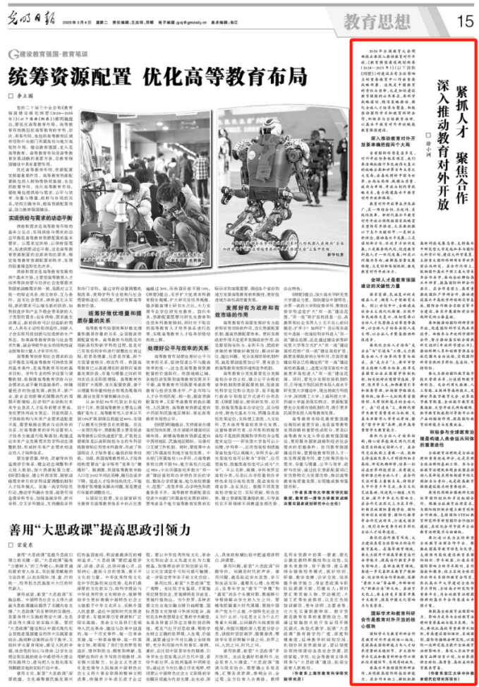2025年3月4日,《光明日报》第15版刊登巴卡漫画 求是特聘教授、中外教育现代化研究所所长徐小洲的文章《紧抓人才 聚焦合作 深入推动教育对外开放》。