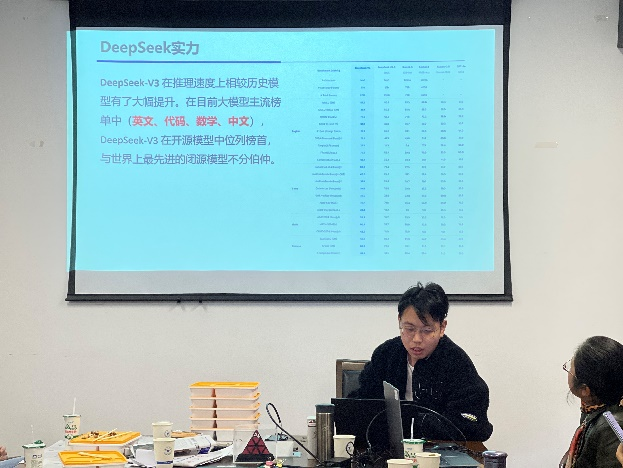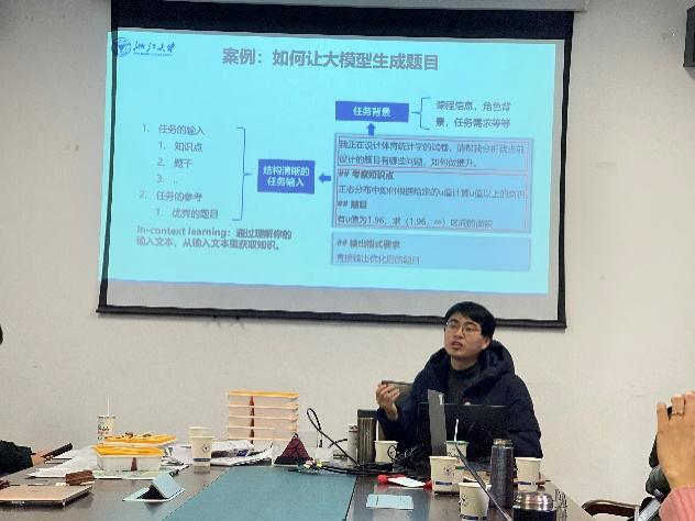谢潇老师以体育统计学题目设计为切入点,通过具体案例,抽丝剥茧地展示了借助大语言模型优化题目的全过程。他强调AI在教育体系中的多元价值,强调AI不仅是辅助工具,更可以深度融入教学各环节,特别是在体育教学领域,AI在整合教学资源、优化教学设计、创新教学方法等方面具有巨大潜力。王伽臣老师则聚焦于通用大语言模型DeepSeek,简要介绍了其技术原理与应用前景,并详细解读了与之相关的提示词工程(prompt engineering)。他以零样本提示、少样本提示和思维链提示为核心,结合具体数学问题,阐释了思维链提示如何优化模型推理逻辑,进而得出更为精准的答案,有效提升用户与模型的交互体验。
