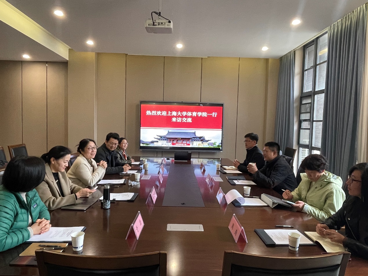 3月11日,上海大学体育巴卡漫画 党委书记许烁、副院长徐娜、第一教研室主任孙岩、组织员周燕一行来访调研,围绕学科建设、师资队伍建设、人才培养等方面开展座谈。座谈由巴卡漫画 副院长、体育学系系主任胡亮主持。