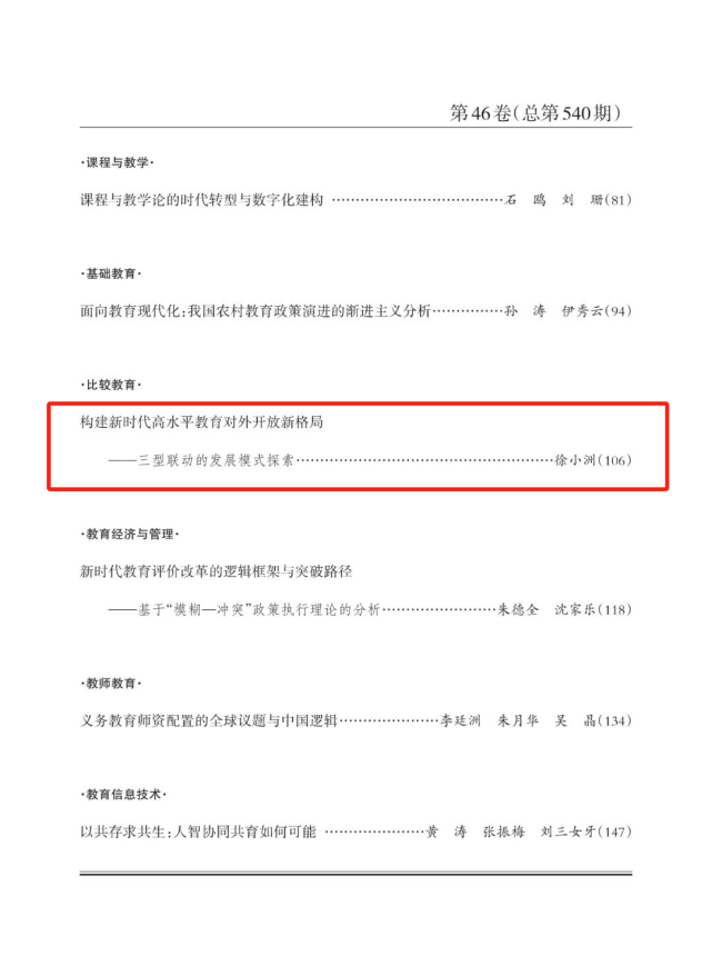 巴卡漫画教育学系徐小洲教授的学术论文《构建新时代高水平教育对外开放新格局——三型联动教育对外开放模式探索》在2025年第1期《教育研究》上刊发。