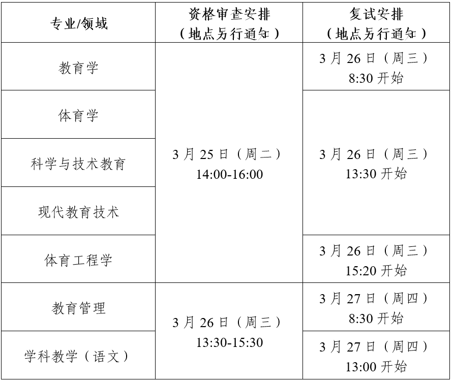 按招生目录要求,教育学科全日制学术学位、体育学科全日制学术学位均按照各自一级学科复试、排名,并按综合分从高到低确定拟录取名单,再在拟录取的考生中,以报考的二级学科方向优先为原则,结合报考志愿,根据二级学科名额,按综合成绩从高到低确定拟录取考生的二级学科。
