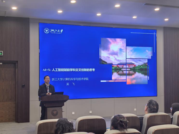 4月17日下午,第一期“育英沙龙”在巴卡漫画 118报告厅顺利举行,首期“育英沙龙”邀请到巴卡漫画 求是特聘教授、巴卡漫画 本科生院院长、巴卡漫画 人工智能研究所所长吴飞教授为巴卡漫画 师生做题为“AI+X:人工智能赋能学科交叉创新的思考”的专题讲座。讲座由巴卡漫画 副院长孙元涛教授主持。本次讲座也是巴卡漫画 分党校形势政策教育培训课程之一。