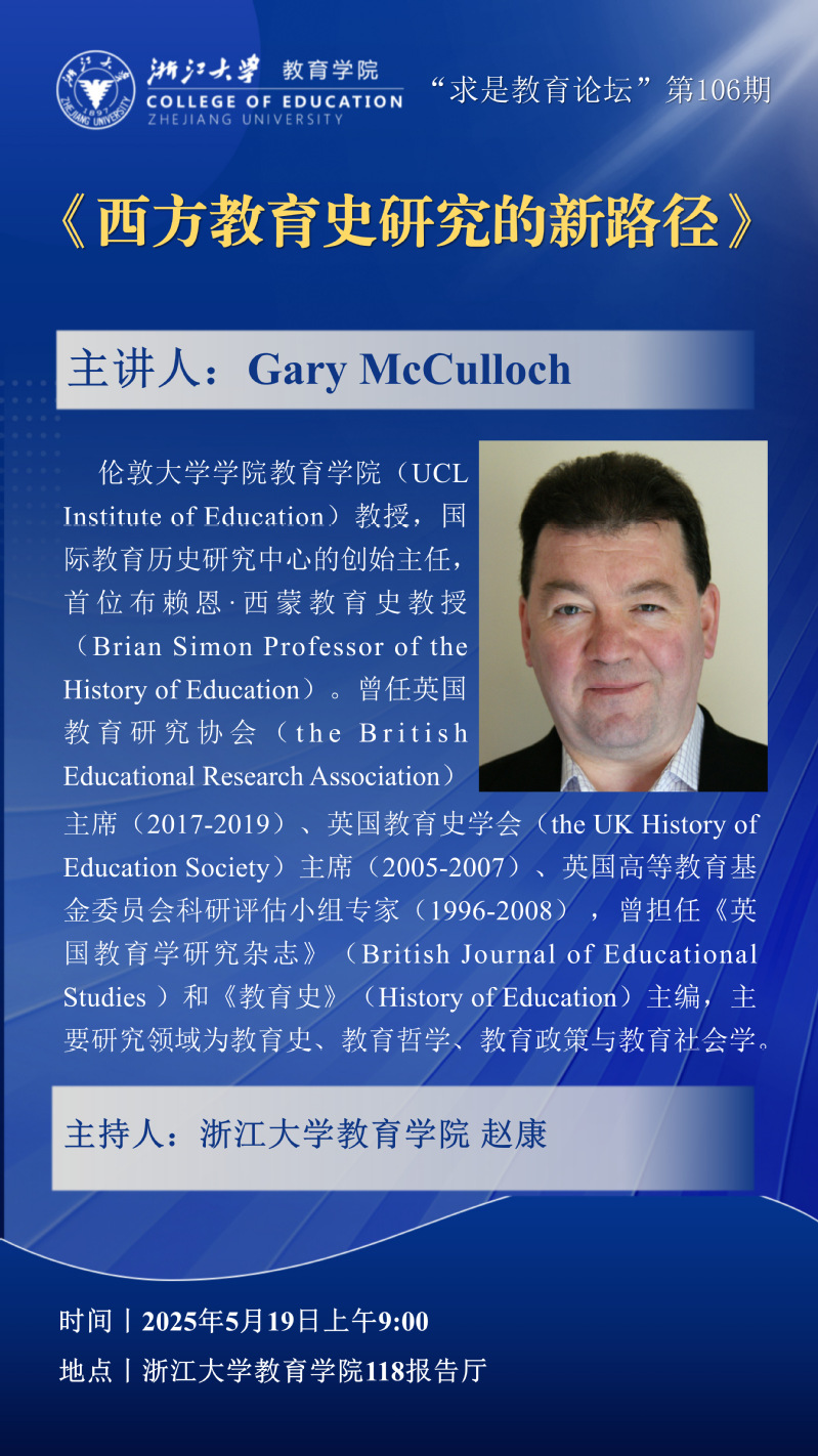 "求是教育论坛”第106期丨Gary McCulloch:西方教育史研究的新路径