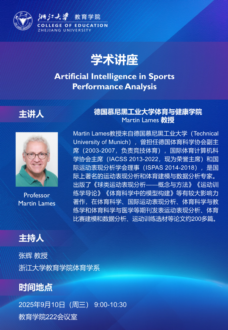 学术预告丨Professor Martin Lames:Artificial Intelligence in Sports Performance Analysis