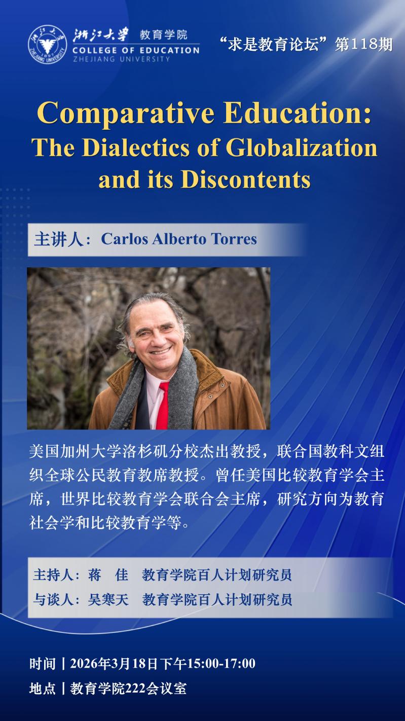 “求是教育论坛”118期丨Carlos Alberto Torres :Comparative Education: The Dialectics of Globalization and its Discontents
