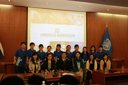 The College of Education’s program ‘Study Tour in Bangkok’, composed of a group of 5 undergraduate students and 5 graduate students, was successfully completed under the leadership of Dr. Mei Weihui and Dr. He Shanyun from 1 October to 6 October, 2013. Apart from visiting UNESCO Bangkok Office, the group also visited Chulalongkorn University, Rangsit University, Assumption University and AIT.
