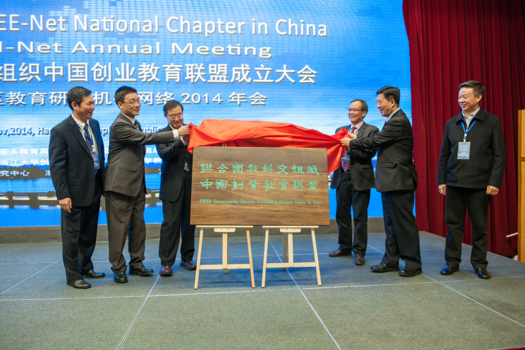 Inauguration of the UNESCO Entrepreneurship Education-Network (EE-Net) National Chapter in China and the 2O14 Education Research Institute-Network (ERI-Net) Annual Meeting was held from 25th to 28th, Nov. 2014 at Zhejiang Narada Grand Hotel. This conference was sponsored by the UNESCO Asia-Pacific Regional Bureau for Education, Chinese National Commission for UNESCO, and Zhejiang University (ZJU), and held by the UNESCO Chair in Entrepreneurship Education at ZJU, College of Education in ZJU, and the Research Institute of Development Strategy in ZJU. The conference had two topics for discussion: one was the inauguration of the EE-Net National Chapter in China and the construction of its platform; the other was the international comparison of evaluation and employment system of academic staff in higher education institutes. This conference was aimed at enhancing communication and cooperation among countries in the Asian-Pacific Region on entrepreneurship education and academic evaluation under the framework of UNESCO.