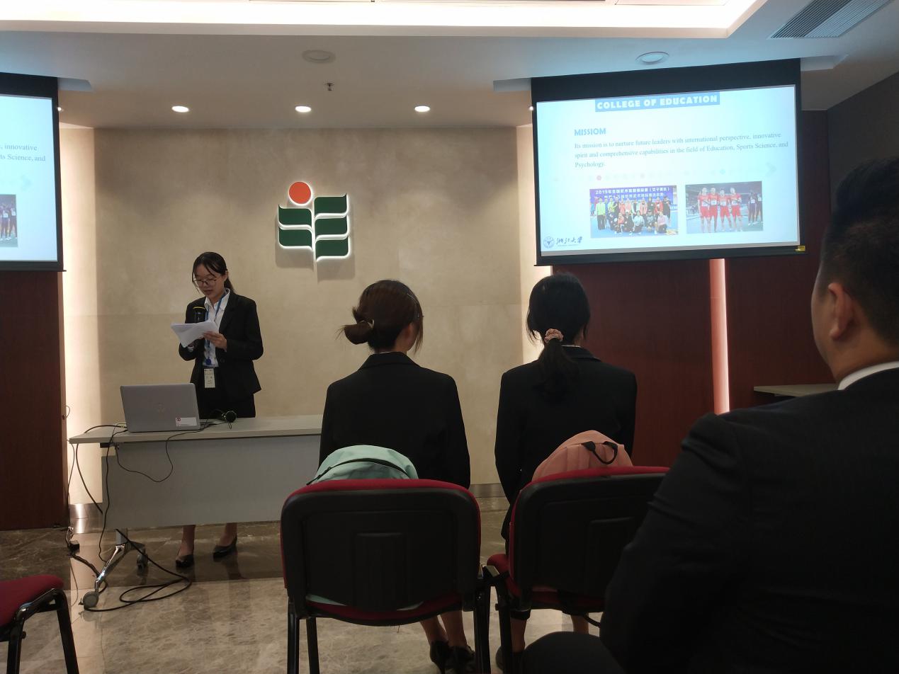 Then Shi Xinyue and Wang Lu who major in education introduced the history, campuses, academics, spiritual culture of Zhejiang University and College of Education.